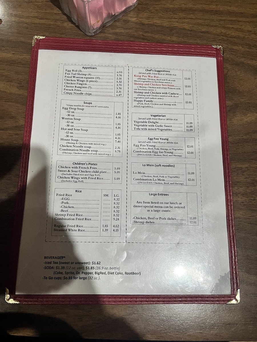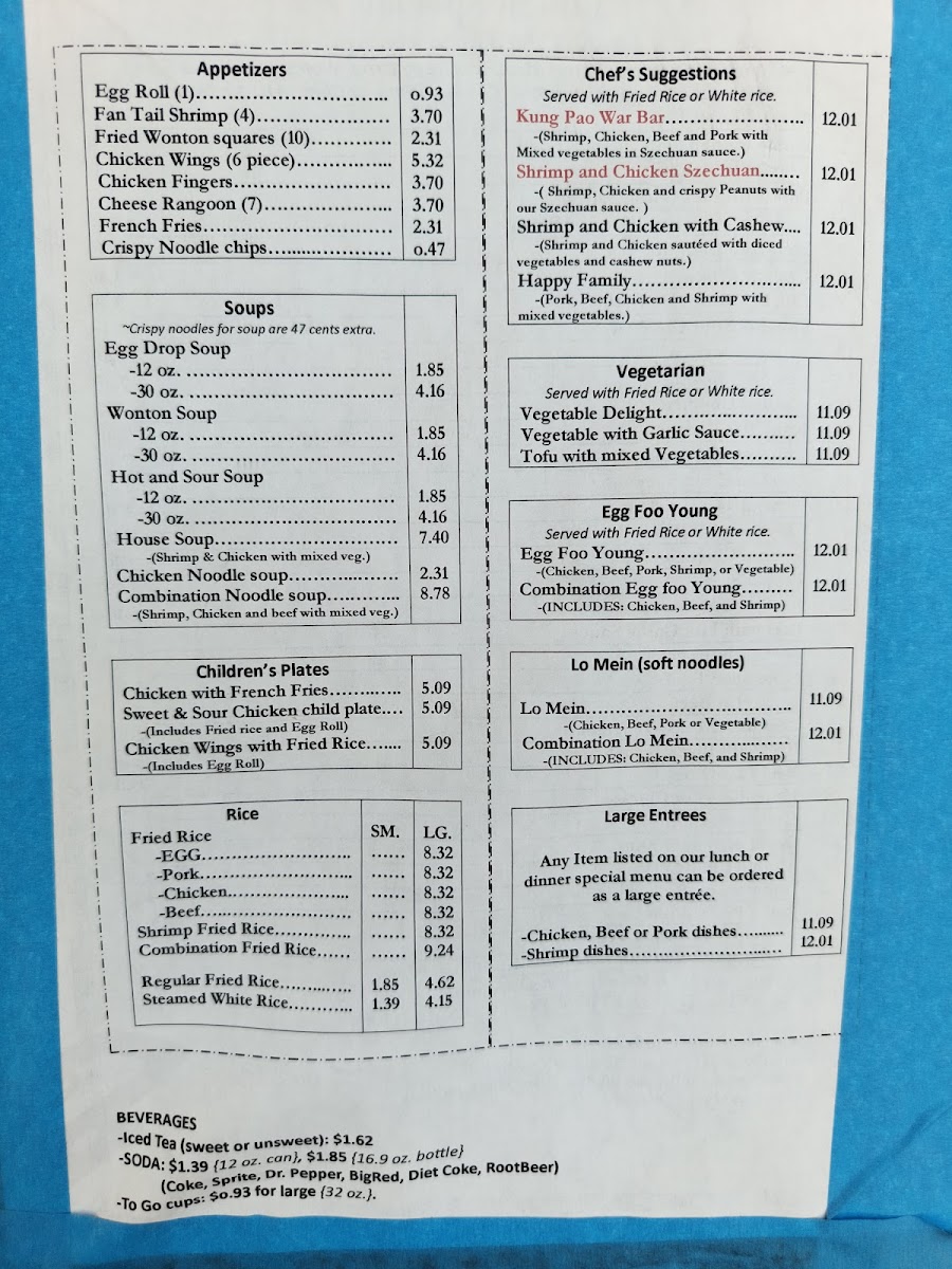 China Star Chinese Restaurant Menu